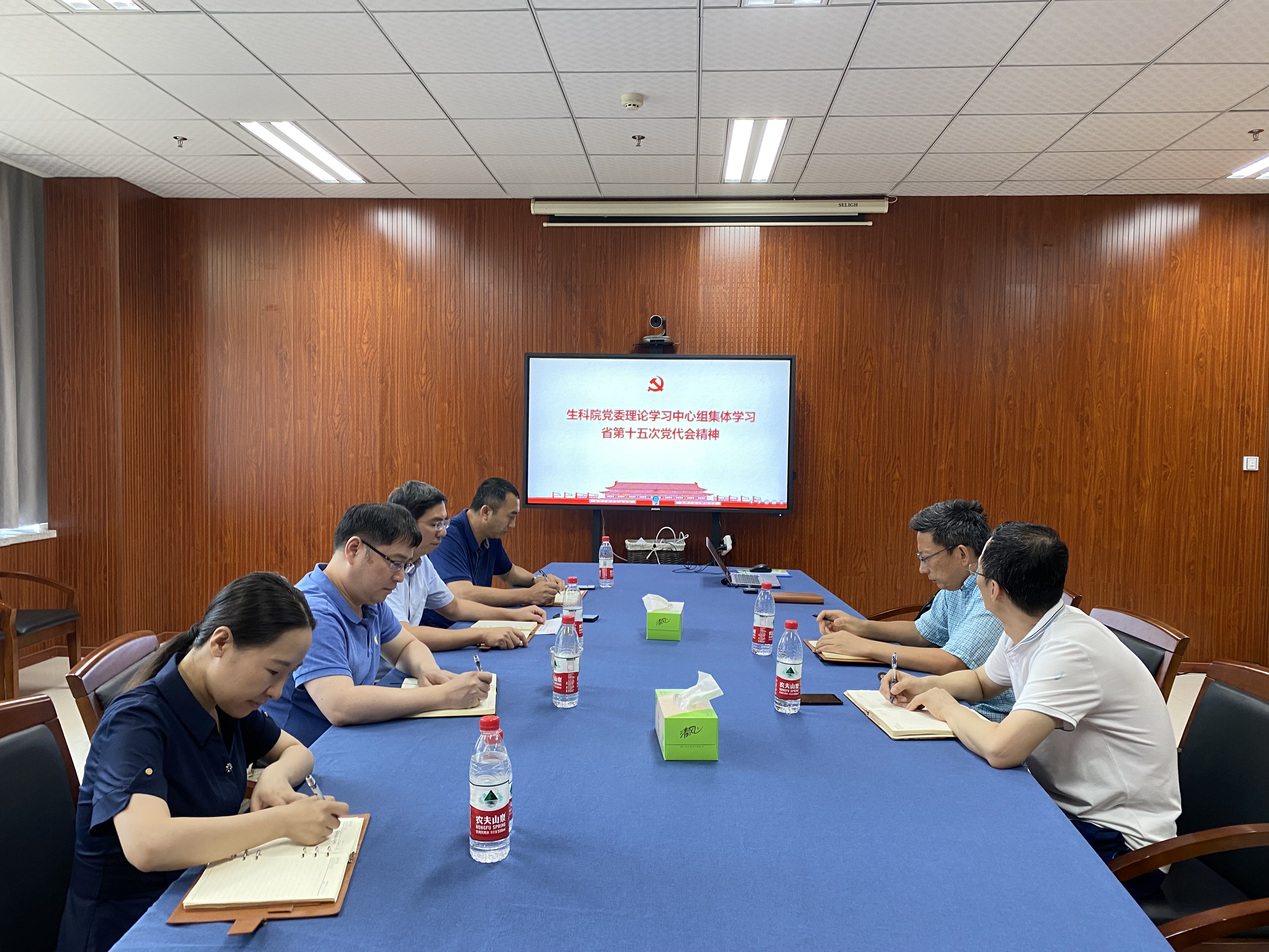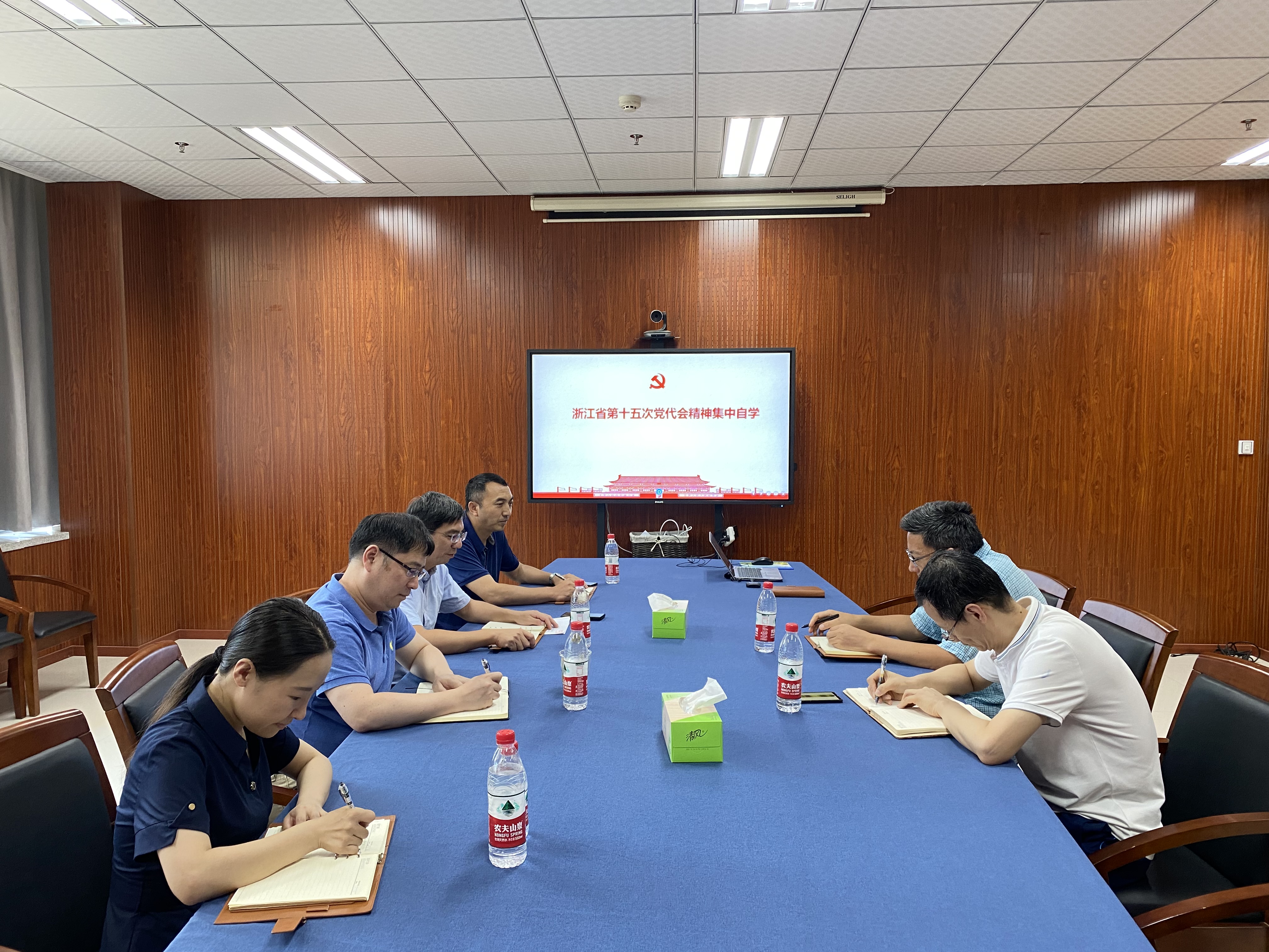 7月12日上午,做爱自拍 党委理论学习中心组成员在慎园15-313集体回顾观看了浙江省第十五次党代会开幕会,并对浙江省第十五次党代会精神集体自学,对省党代会报告内容、6问6答内涵、报告中的“实”与“情”,创新等精髓进行深入学习。