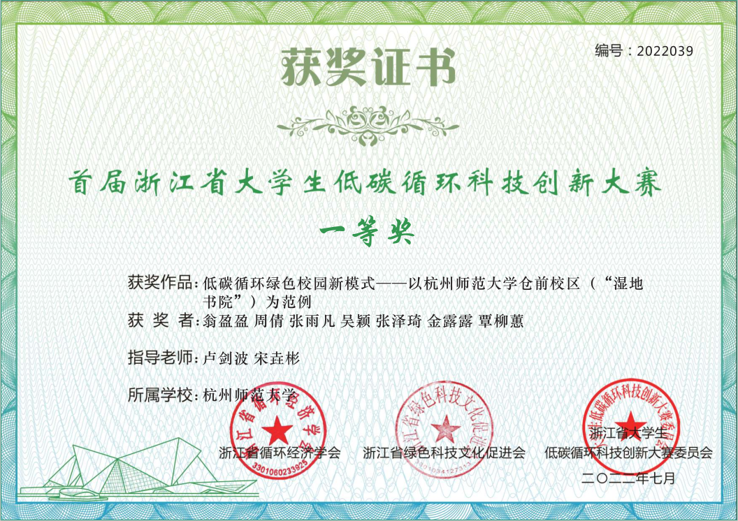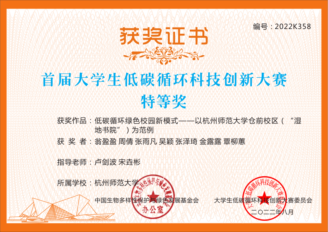 做爱自拍 本科生翁盈盈、周倩、张雨凡、吴颖、张泽琦、金露露和覃柳蕙7位同学组成的绿色空间队在决赛中斩获佳绩,获评大赛特等奖。获奖项目名称为“低碳循环绿色校园新模式——以做爱自拍 仓前校区(“湿地书院”)为范例”,由做爱自拍 卢剑波和宋垚彬两位老师指导。项目以做爱自拍 仓前校区(“湿地书院”)为范例,在校区内进行校园植被固碳能力测定与校园新能源技术碳减排估算,对低碳循环绿色校园建设的技术与经验进行了调查、建模分析、定量计算和总结,还对湿地校园建设以及湿地生物多样性保护提出了重要的科学建议。本项目的获奖离不开老师与同学共同的付出与努力,同时要感谢我校后勤服务中心及陈明章老师为本项目提供了有关我校仓前校区的基础数据。
