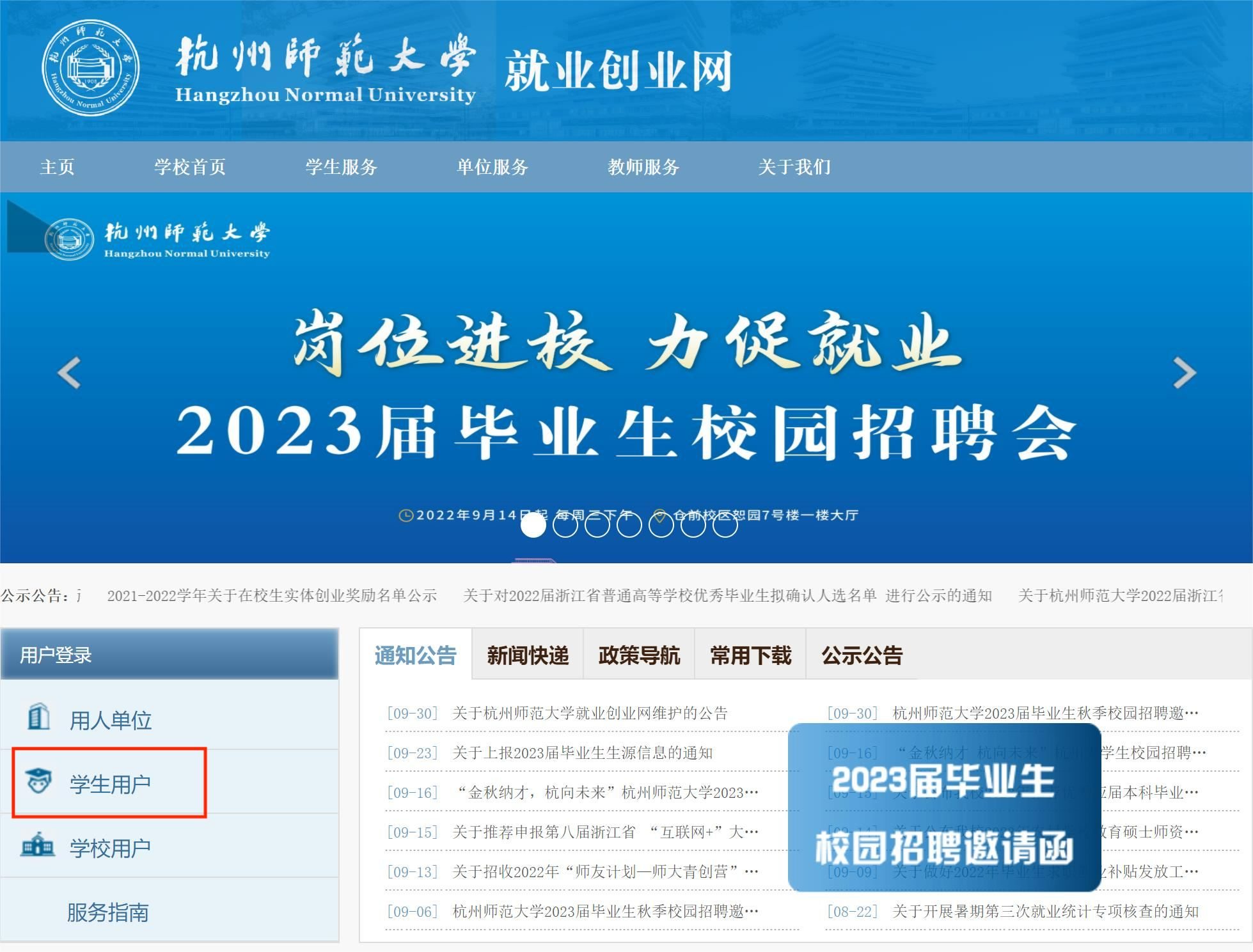 毕业生前往做爱自拍 就业创业网,点击“用户登录”“学生用户”,使用统一身份认证账号密码进行登录,进入“学生中心”平台。