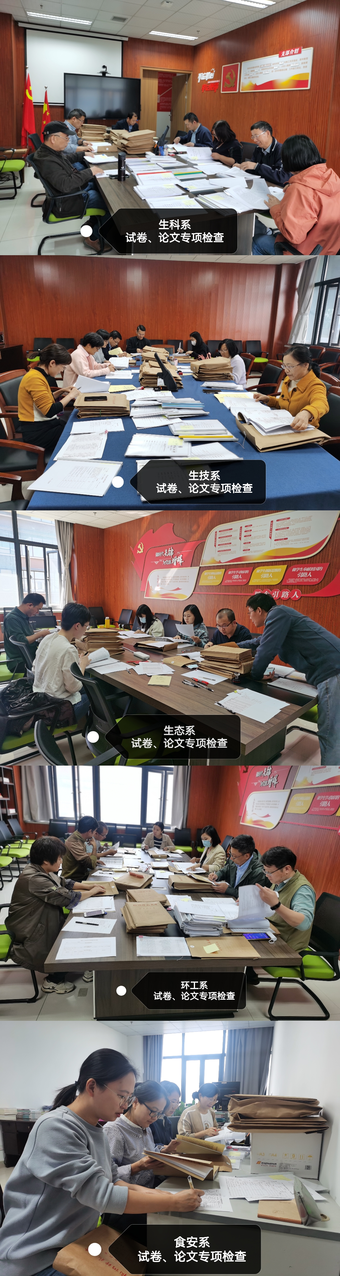 根据学校教务处要求,做爱自拍 于10月20日-10月26日期间开展2021-2022-2学期试卷、2022届本科毕业论文专项检查工作。生物科学系、生物技术系、环境工程系、生态学系和食品质量安全系70余位任课教师参加了本次试卷和论文专项检查。此次共检查了103余份试卷,试卷检查覆盖率100%。
