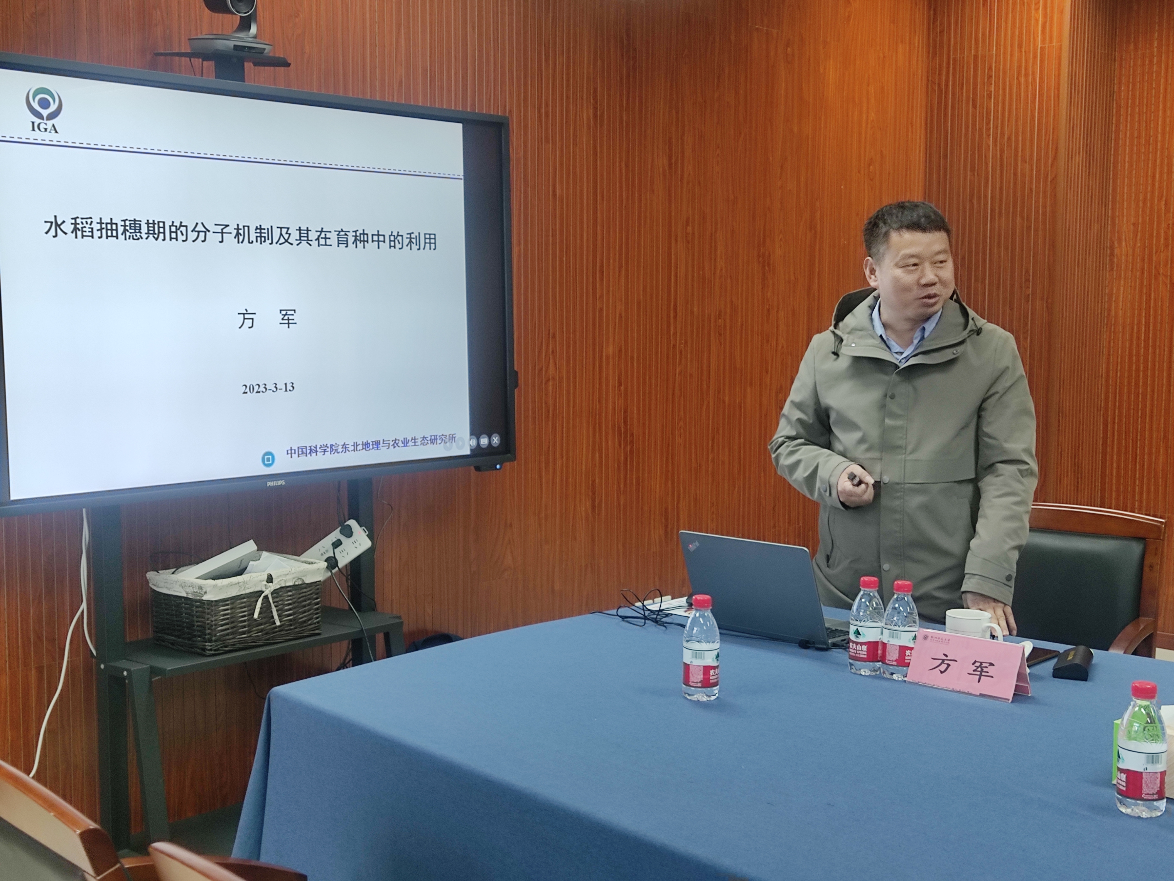 3月13日上午,做爱自拍 在慎园15-313会议室举行了2023年第4期生科撷英讲坛,中国科学院东北地理与农业生态研究所方军研究员,应邀来做爱自拍 为师生做了题为“水稻抽穗期的分子机制及其在育种中的应用”学术报告。讲坛由薛大伟院长主持,植物研究方向的师生参加本次讲坛。