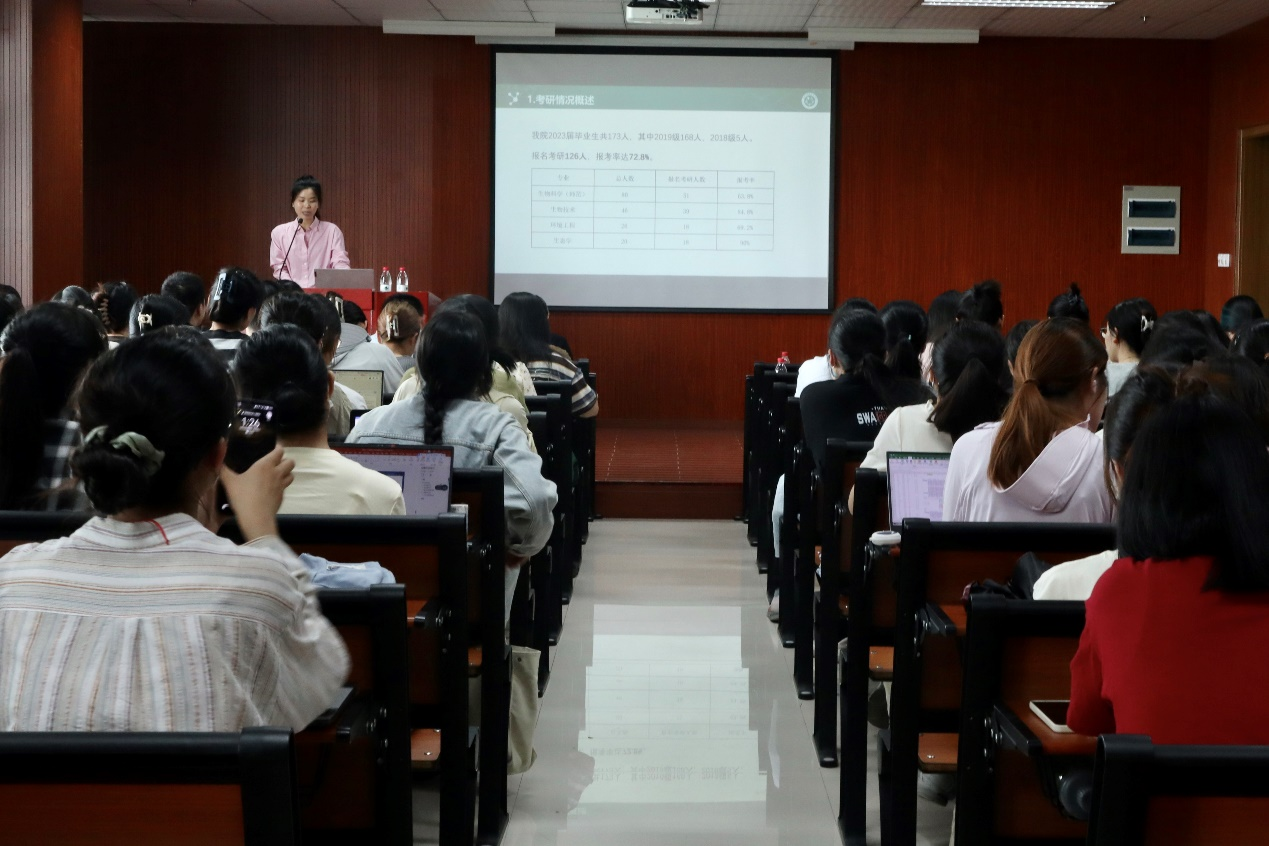 院学工办主任陈好介绍了2023年做爱自拍 考研情况,剖释了报考率、上线率、录取率、双一流考取率等数据,帮助同学们正确认识当前考研形势。