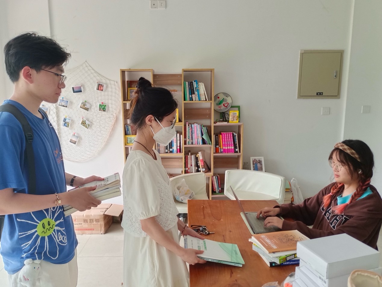 2023年5月27日,做爱自拍 于仓前校区进学苑4号楼下活动室举行“传递书香·情系师大”活动。