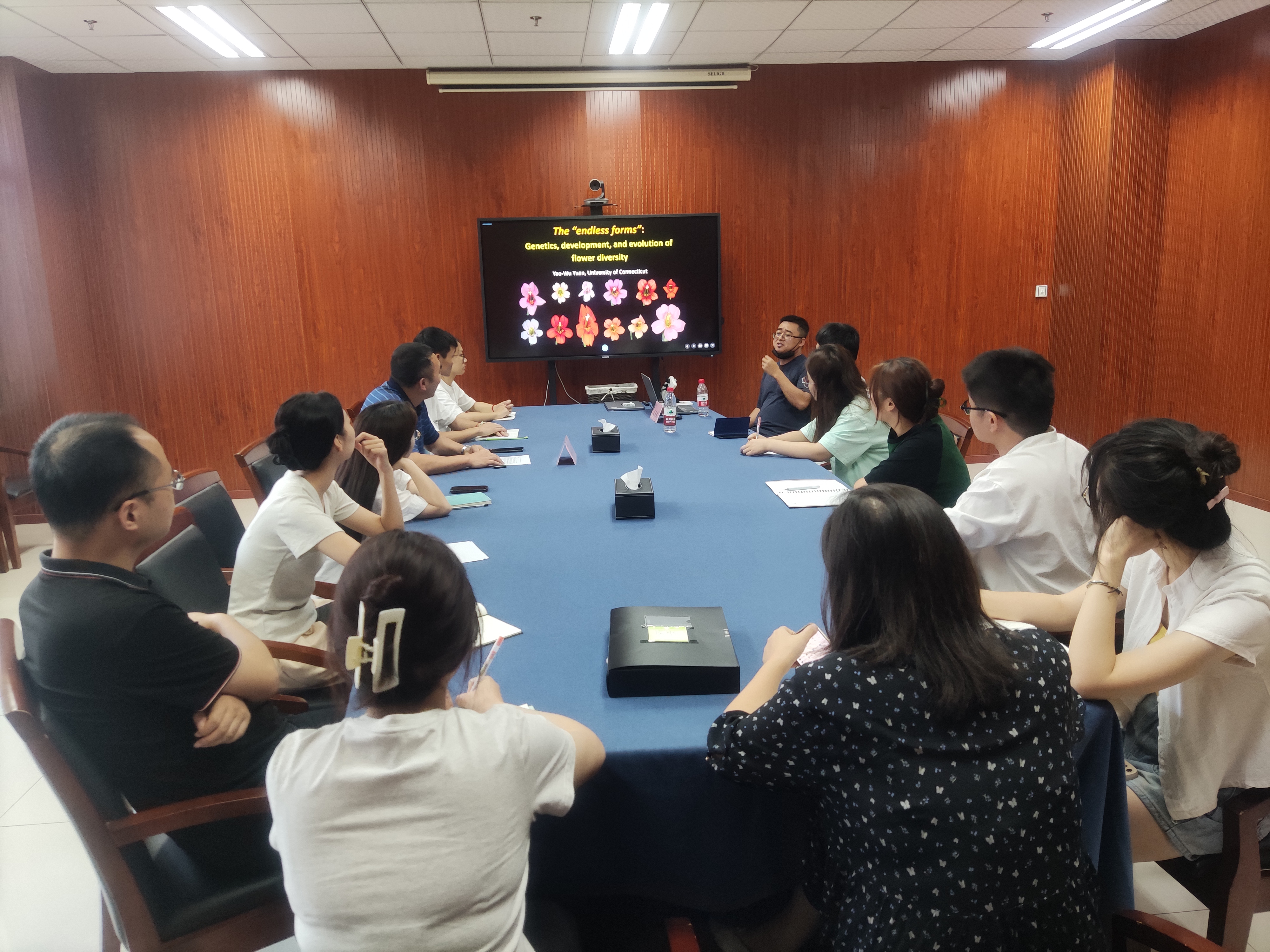 7月10日上午,做爱自拍 在慎园15-313报告厅举行了2023年第23期生科撷英讲坛,美国康涅狄格大学袁耀武副教授,应邀来做爱自拍 为师生们做了题为“The “endless forms”: Genetics, development, and evolution of flower diversity”的学术交流报告,报告会由于彦春副院长主持,生物学的教师和研究生参加。