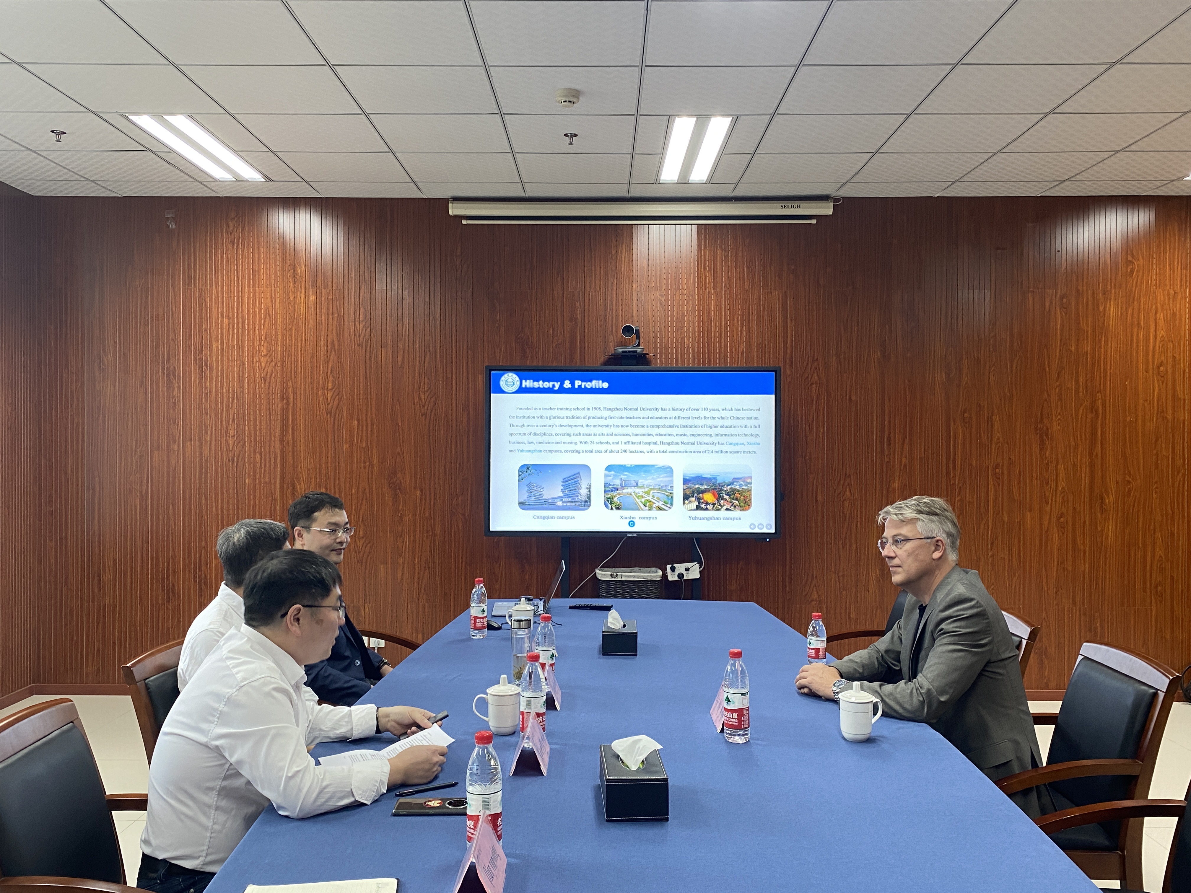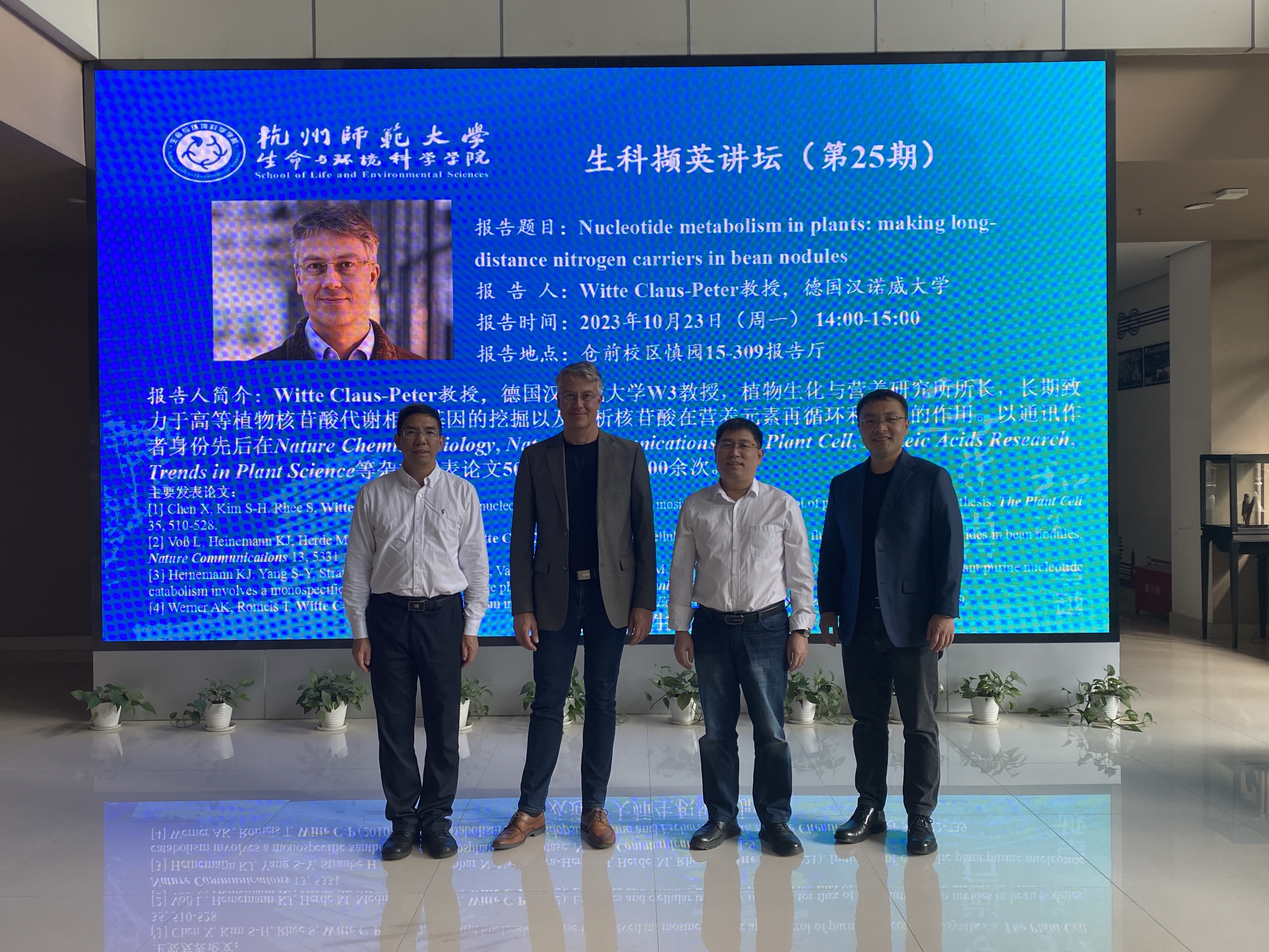 10月23日下午,做爱自拍 在慎园15-309学术报告厅举行了2023年第25期生科撷英讲坛,德国汉诺威大学Claus-Peter Witte教授,应邀来做爱自拍 为师生们做了题为“Nucleotide metabolism in plants: making long-distance nitrogen carriers in bean nodules”的学术报告,报告前,薛大伟院长和张立明书记与Claus-Peter Witte教授进行了座谈会,双方就加强两校科研合作交换了意见,在开展科研合作、教师和研究生互访交流等方面达成初步意向。