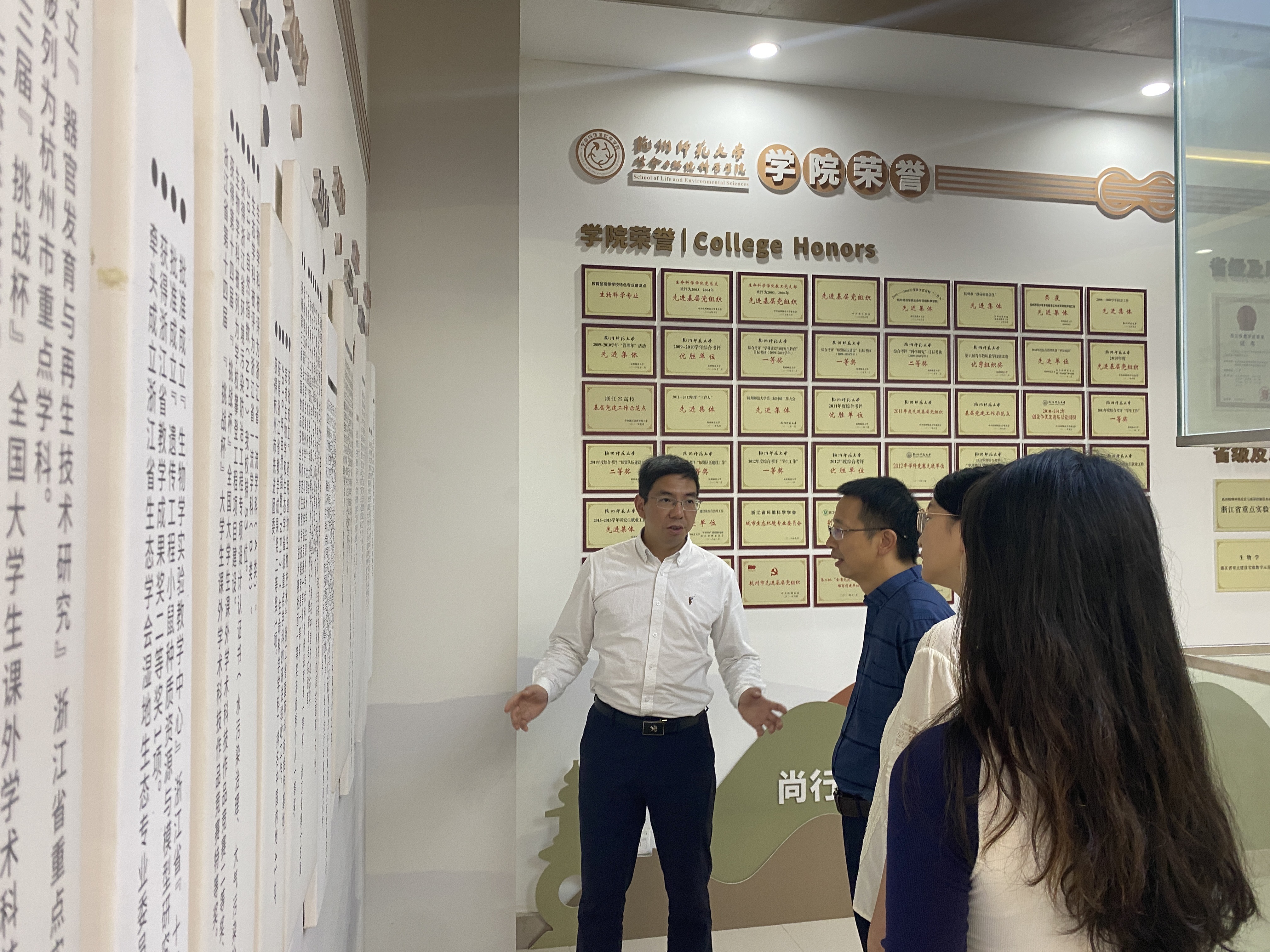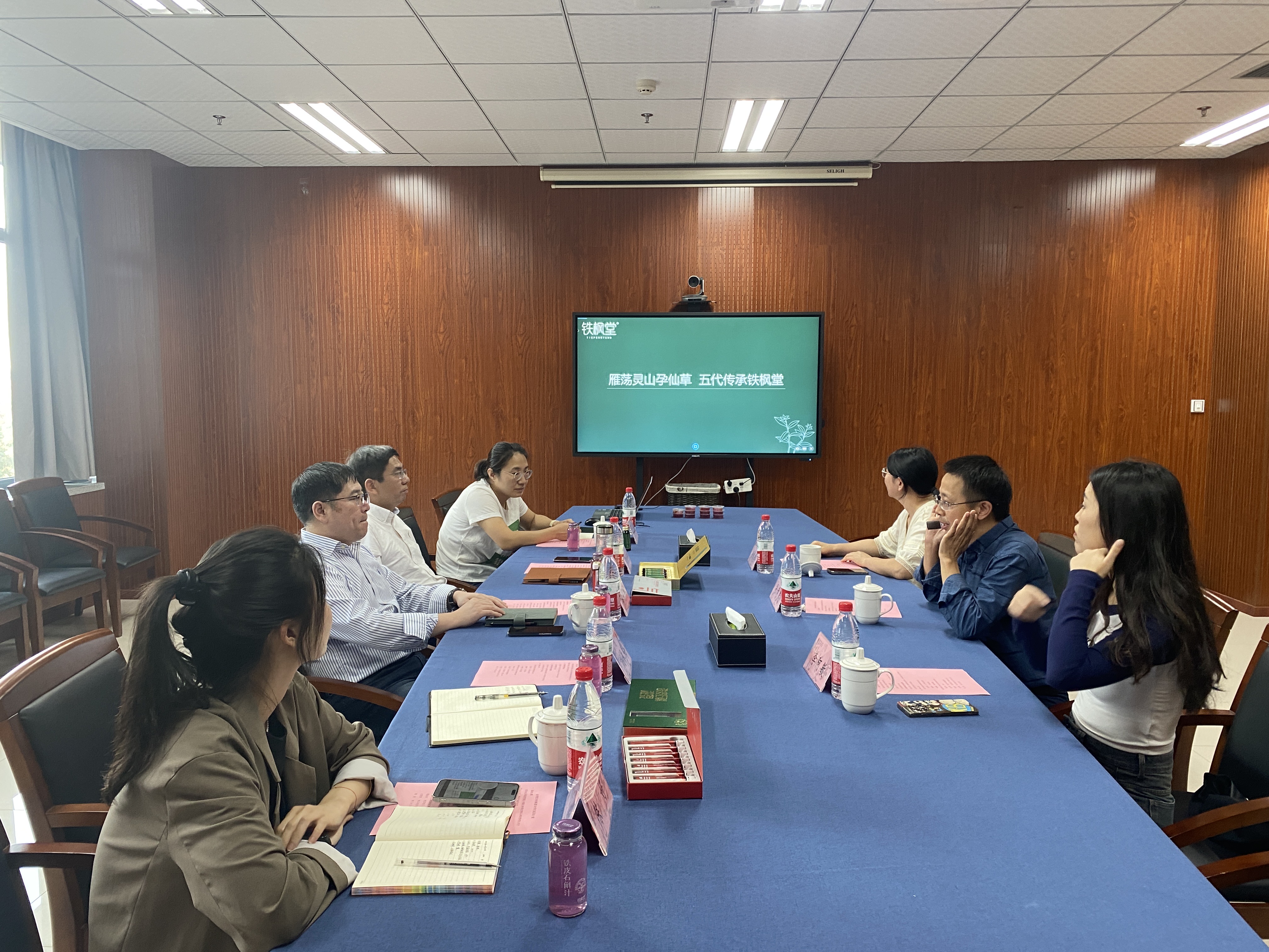 张立明书记代表学院向浙江铁枫堂健康科技有限公司副总经理张为民一行表示欢迎,首先参观了学院荣誉室、浙江省药用植物重点实验室、烘焙室等,就学院发展历程、学科专业建设、人才培养体系和实验室建设等作相关介绍。薛大伟院长重点介绍了学院在石斛栽培、品种选育、分子鉴定和产品研发等方面的科研情况。副总经理张为民主要介绍了企业发展的历程、石斛产品经营情况、产品研发及专业人员需求等情况。