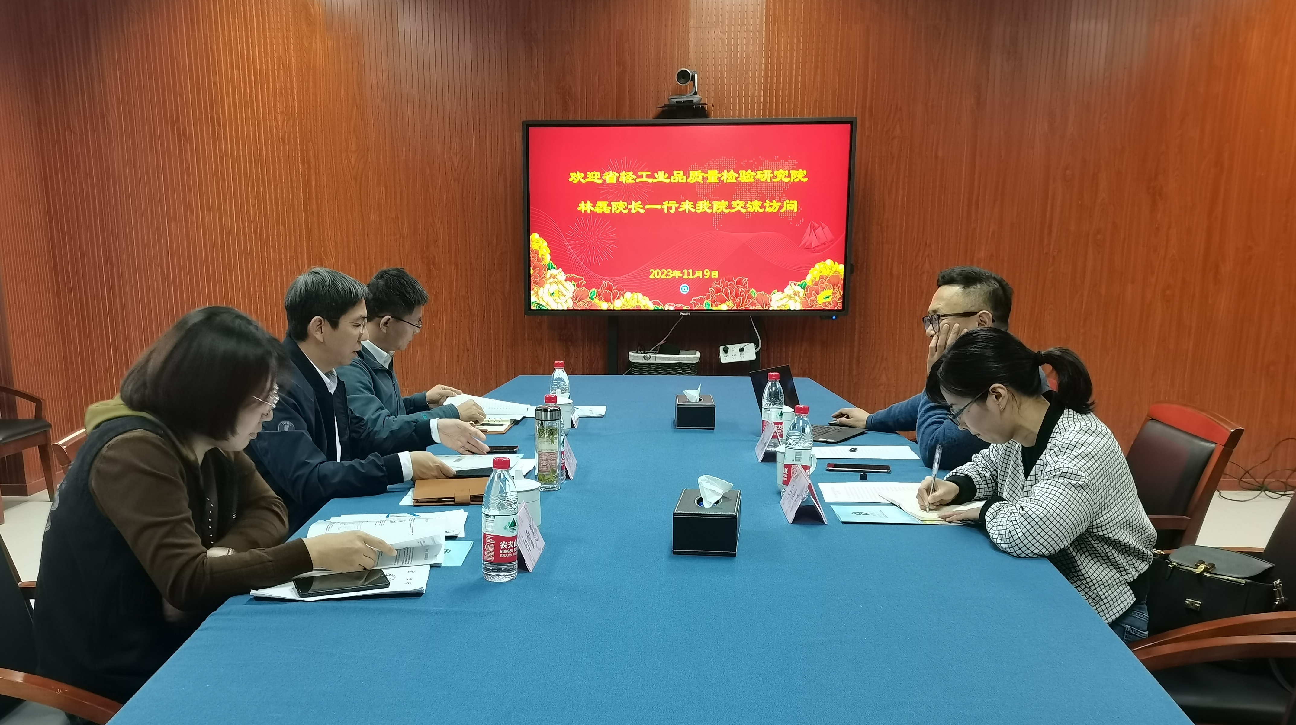 11月9日下午,浙江省轻工业品质量检验研究院林磊院长一行来做爱自拍 交流。学院党委书记张立明、副院长宋垚彬及教师代表白雪莲参加此次座谈会。