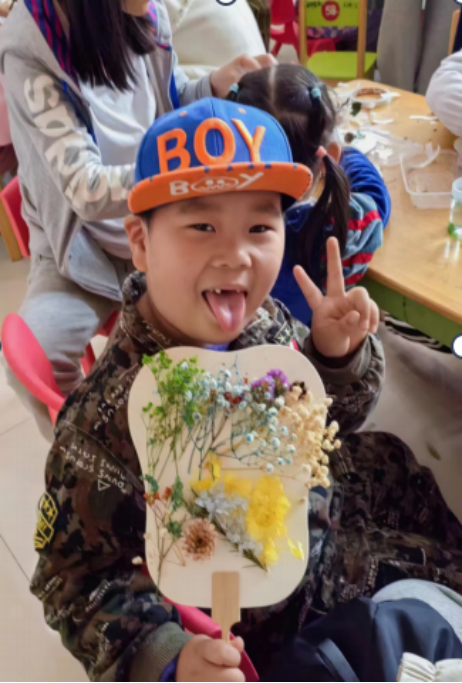 通过展示美丽的团扇成品,小朋友们逐渐变得跃跃欲试,干花团扇的制作活动便如火如荼地开展了,每个孩子脸上洋溢着喜色,在我们敬职又亲切的社员们地指导和家长们地帮助下,孩子们的童真和创造力在团扇上化为具体的图案。随着扇面不断地长出干花,忙碌的社员们不仅及时维持秩序和提供帮助,还主动为孩子们快乐的身影拍照留念,使活动顺利接近尾声。在孩子们心满意足地拿着艺术品离开后,社员们勤勤恳恳进行善后工作将场地恢复原状。