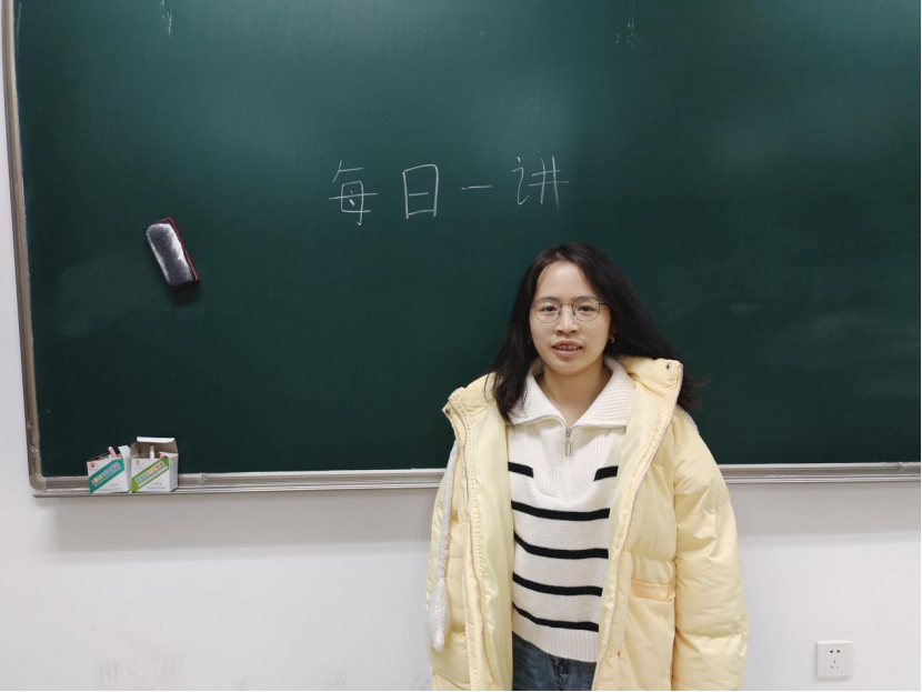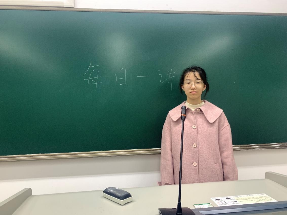 2023年11月22日,晚自习前,在下沙校区B号楼210教室,生科235的张奕阳同学为大家进行了关于“润泽展望国家建设深入推进,谋求民族复兴大任”的每日一讲。