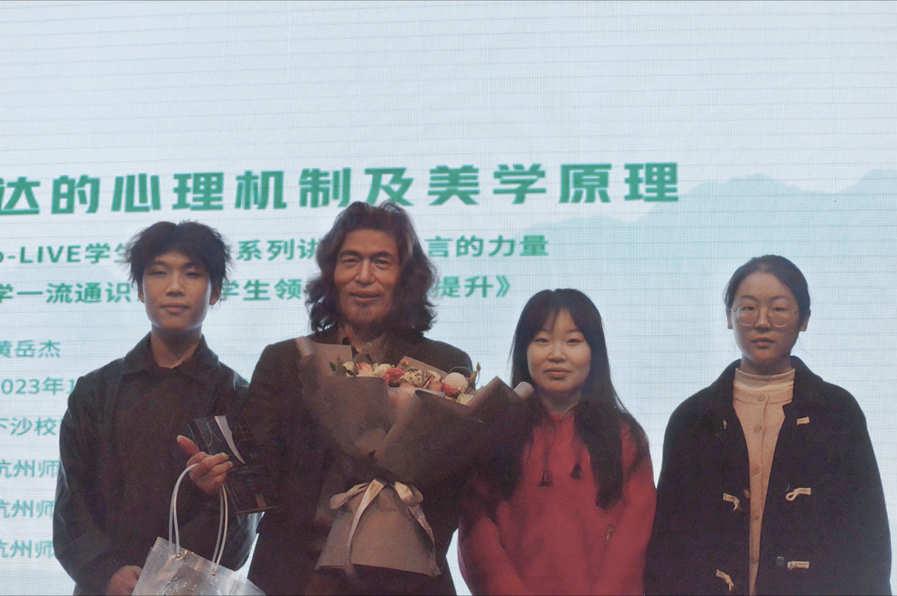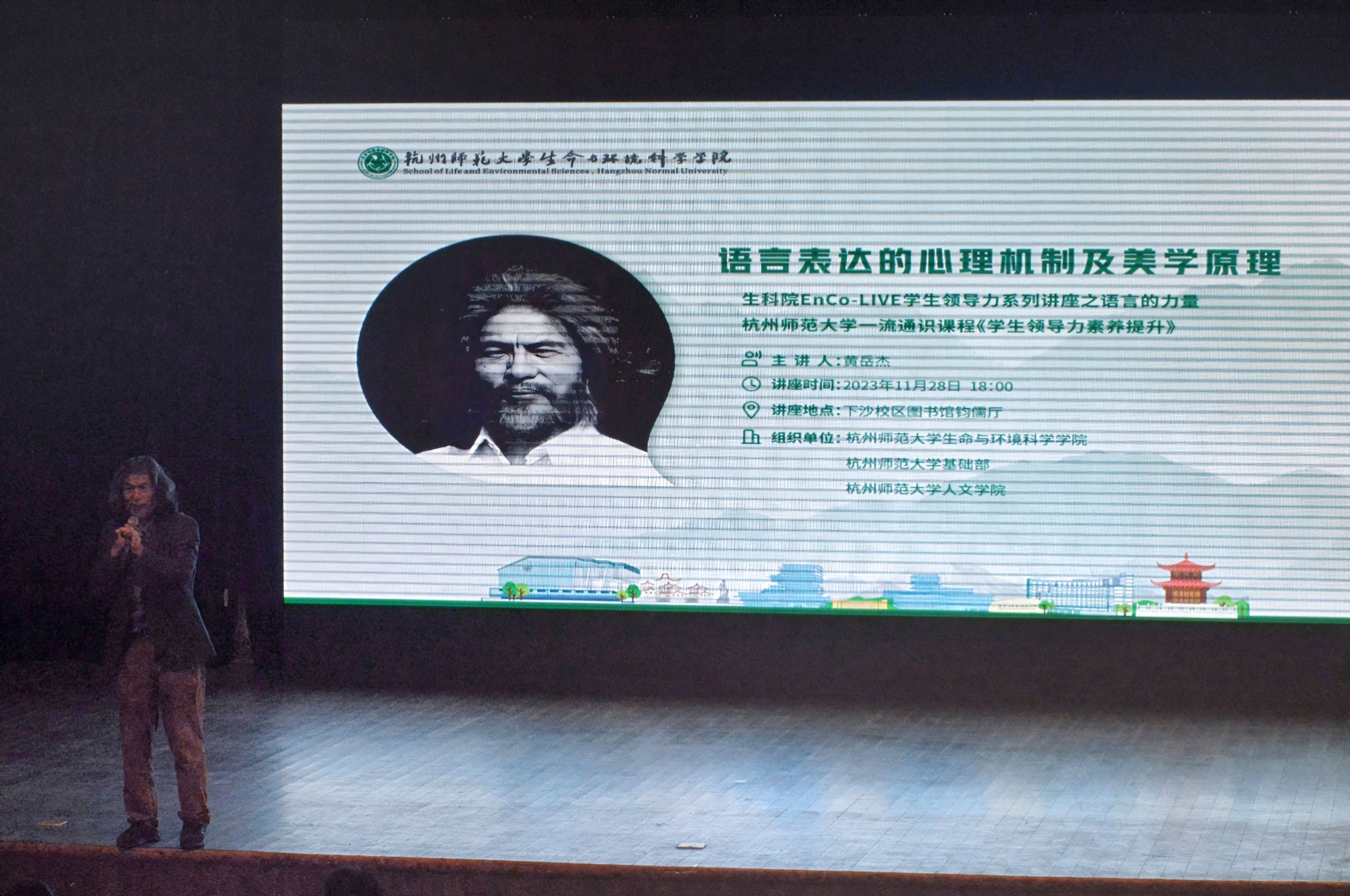 11月28日,做爱自拍 、基础部、人文学院联合举办EnCo-LIVE学生领导力系列专题讲座之语言的力量。中国戏剧家协会会员、杭州市戏剧家协会副主席、浙江省首届高校优秀教师、杭州市五一劳动奖章获得者、人文学院教授黄岳杰在下沙校区钧儒厅作“语言表达的心理机制及美学原理”主题讲座。
