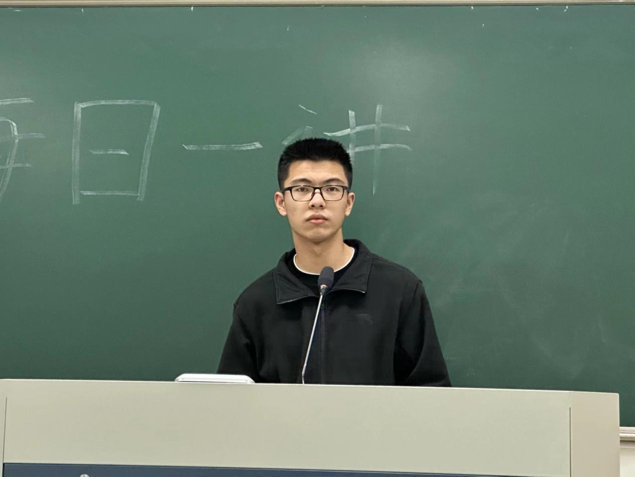 2023年11月27日生技232班的黄益效同学在B号楼216开展了“勇立潮头谱新篇,干在实处创辉煌”为主题的每日一讲活动,