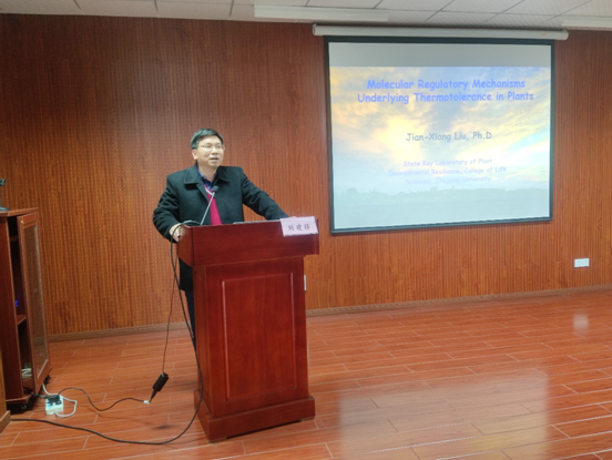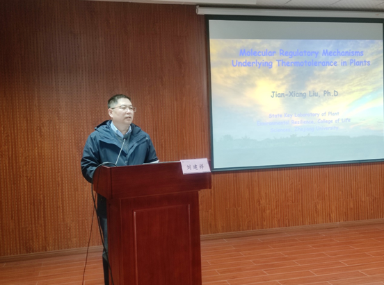 12月13日下午,做爱自拍 在慎园15-309学术报告厅举行了2023年第36期生科撷英讲坛,国家优秀青年基金、国家杰出青年基金获得者、浙江大学求是特聘教授刘建祥应邀来做爱自拍 为师生们作了题为“Molecular Regulatory Mechanism Underlying Thermotolerance in Plant”的学术报告,薛大伟院长主持报告会,植物学方向的教师和研究生踊跃参加。