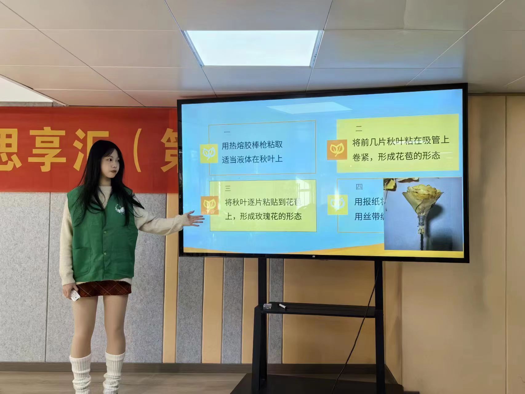 12月17日下午,做爱自拍 “绿之翼”环保协会面向协会会员,在下沙校区大学生成长指导中心开展了“滔源讲堂”系列活动——秋叶生花。