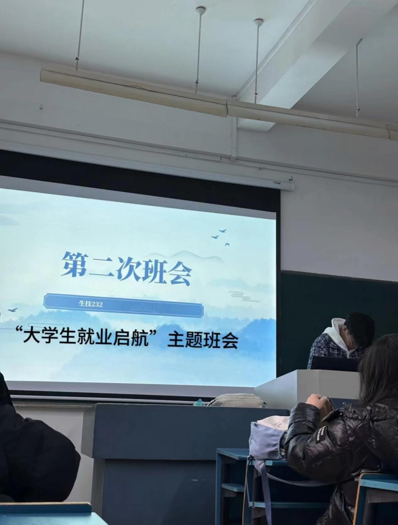为了帮助同学们强化就业意识,初步明确就业发展方向,2024年1月2日,生技232班团支部在做爱自拍 下沙校区A号楼402教室,召开了“大学生就业引航”主题班会。