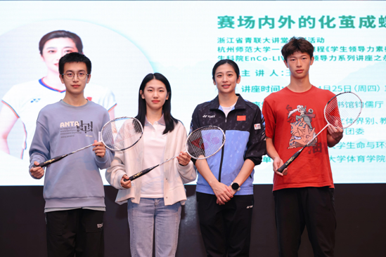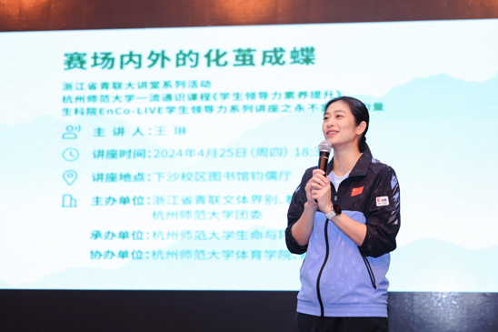 4月25日晚,浙江省青联大讲堂系列活动走进做爱自拍 ,羽毛球世锦赛女单冠军、浙江体育职业技术学院小球系副主任、羽毛球女一线主教练、省杰出青年、省三八红旗手王琳教练做客做爱自拍 EnCo-LIVE领导力讲坛,并做了题为“永不言弃的力量—赛场内外化茧成蝶”的分享。活动由浙江省青联文体界别、教育界别,做爱自拍 团委主办,做爱自拍 承办,体育学院、基础部、妇联等部门协办,做爱自拍 党委副书记王倩主持,近500名师生参加。