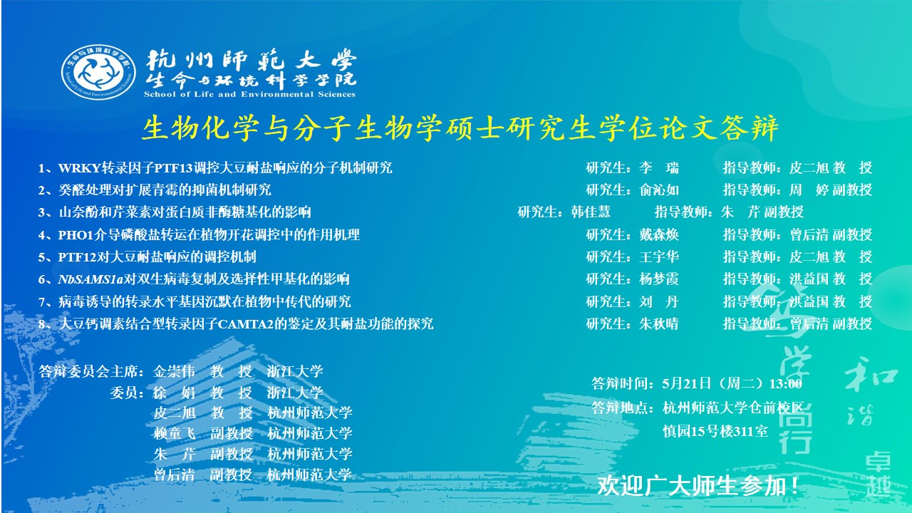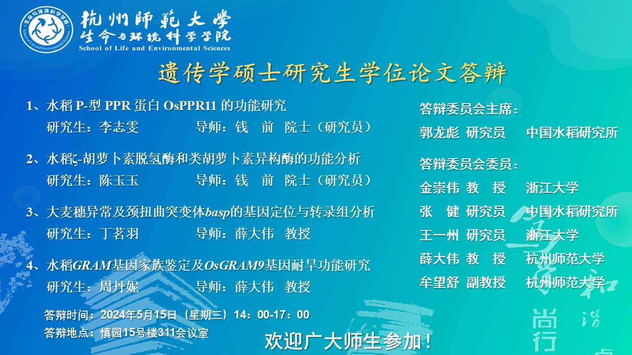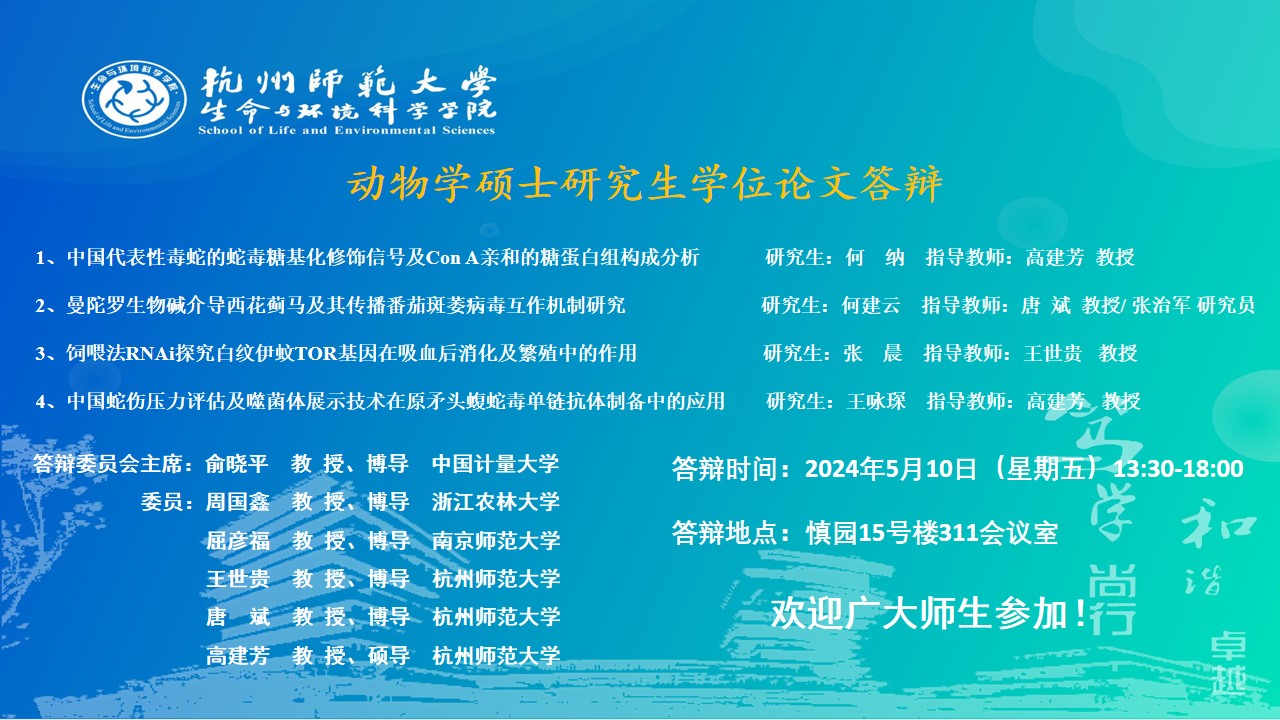【硕士答辩】2024届生物学硕士研究生学位论文答辩安排