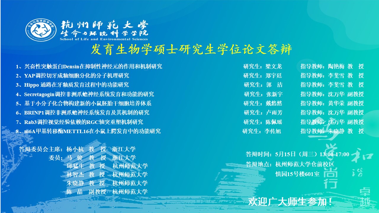 2024届发育生物学硕士研究生学位论文答辩海报 第一组