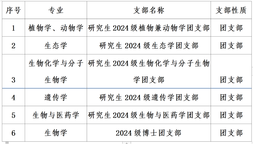 | 6 | 生物学 | 2024级博士团支部 | 团支部 |