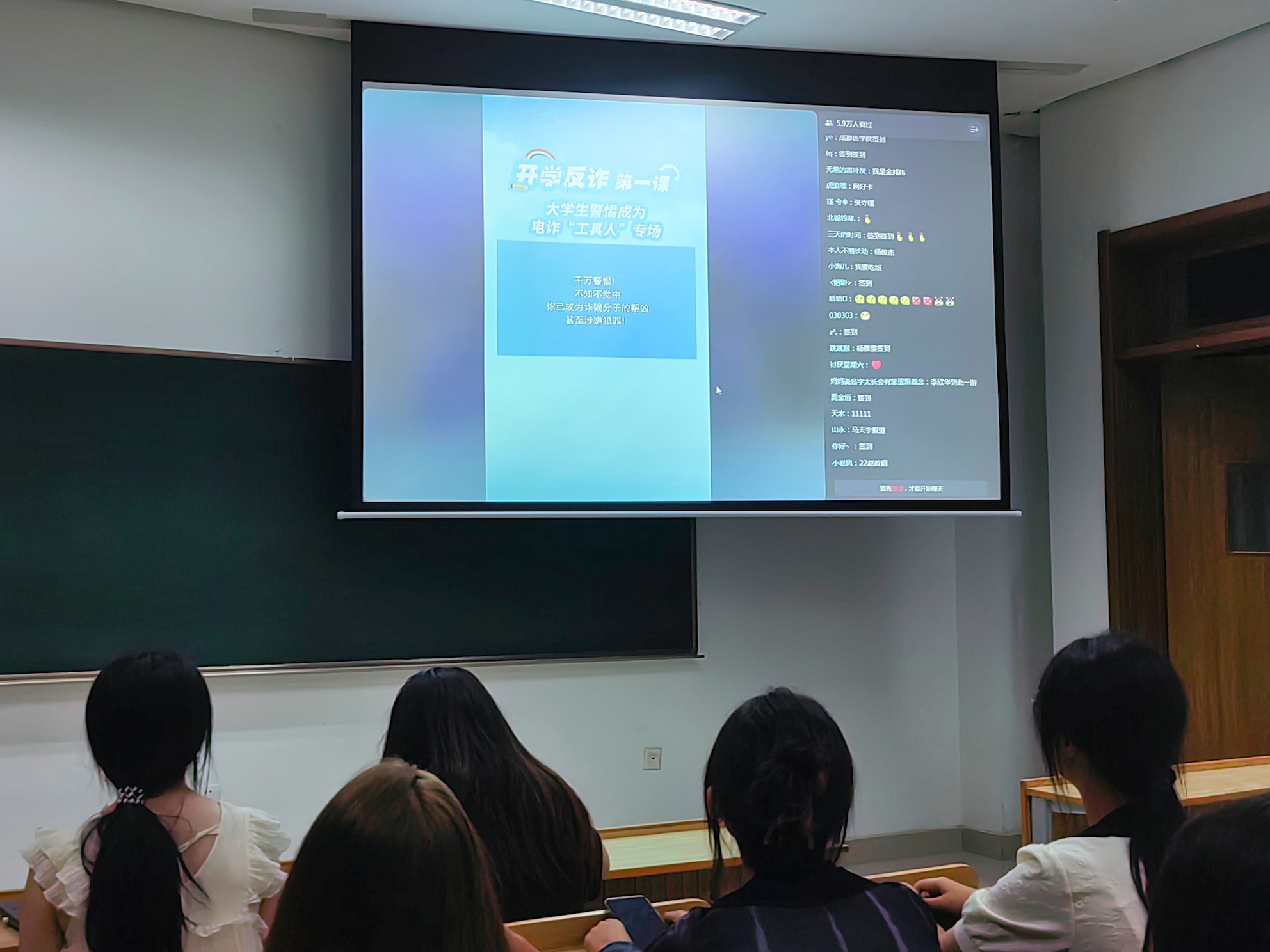 为全力构建“无诈校园”,深入推进校园反诈宣传工作,积极发挥学生干部示范作用,9月6日晚做爱自拍 在慎1-108组织开展集中观看“开学反诈第一课”线上直播活动。六三团学联全体学生干部参加。