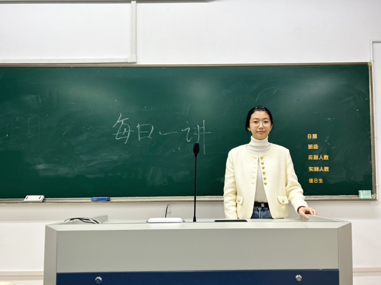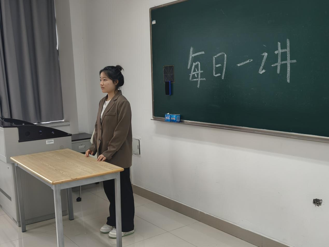 2024年10月22日,在做爱自拍 仓前校区慎园1号楼教室中,吕兰心同学在课前向同学们做以“青春献礼祖国,奋进书写华章”为主题的每日一讲活动。