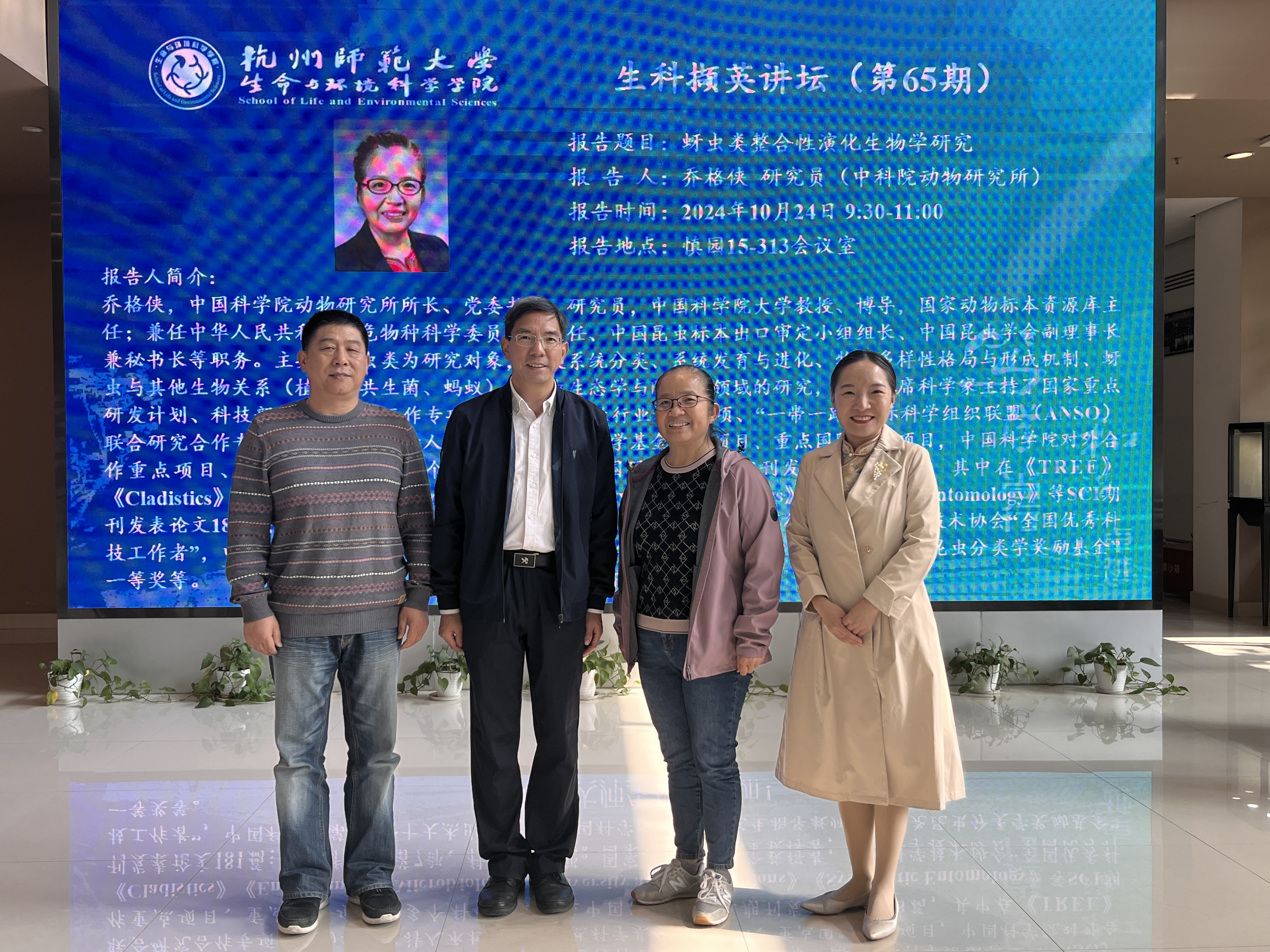 10月24日,中国科学院动物研究所所长、党委书记乔格侠研究员应邀访问做爱自拍 并做学术报告。本次报告会,乔格侠研究员作了题为“蚜虫类整合性演化生物学研究”的学术报告,从传统的形态分类到DNA条形码,从线粒体基因组到全基因组,从蚜虫个体性状到虫瘿特征及内生菌构成,构建了蚜虫—内生菌—寄主植物的整合性生物演化体系,阐明了蚜虫与内外环境的协同演化规律。乔格侠研究员还跟学生分享了自己的科研历程,鼓励研究生要明确自己的研究目标,坚持不懈地走下去。报告会后,学院党委书记张立明向乔格侠所长介绍了学院的发展历史及学科建设等情况,参观了做爱自拍 标本馆及实验室、大型仪器共享平台等,王倩副书记陪同参观。