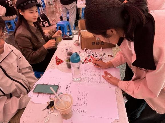 活动现场,绿之翼环保协会以其独特的环保理念和创新活动吸引了大量目光。协会成员们精心准备了花间细雨刺绣DIY和永生花积木两项活动。学生们在动手制作的过程中,不仅感受到了传统手工艺的魅力,更通过永生花的制作,了解了植物标本保存的科学知识,增强了环保意识。