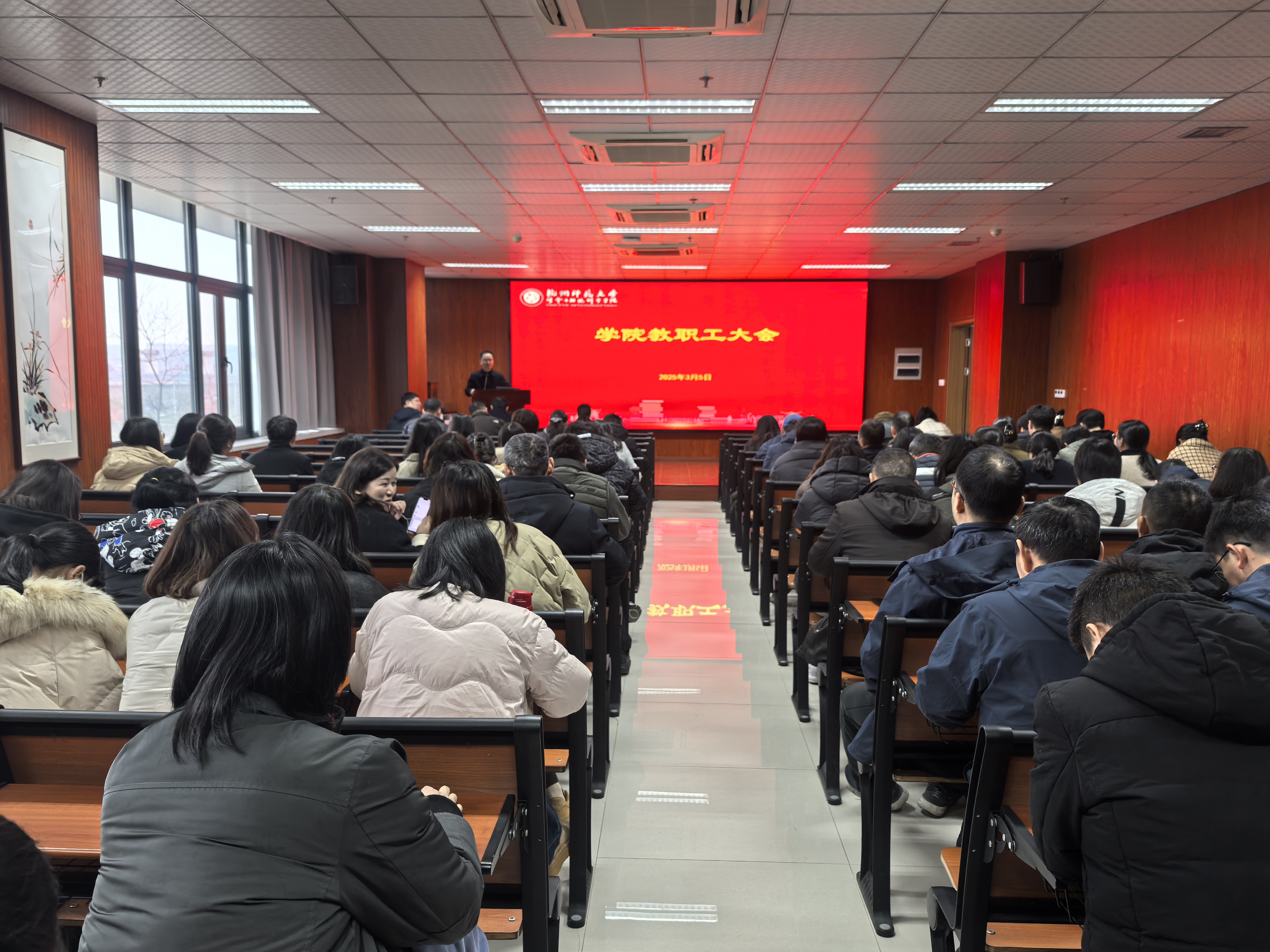 3月5日,学院在慎园15-309室召开全体教职工大会,开展传达学校工作会议精神和专题讲座。学院全体教职工参加会议,会议由院党委书记江齐里主持。