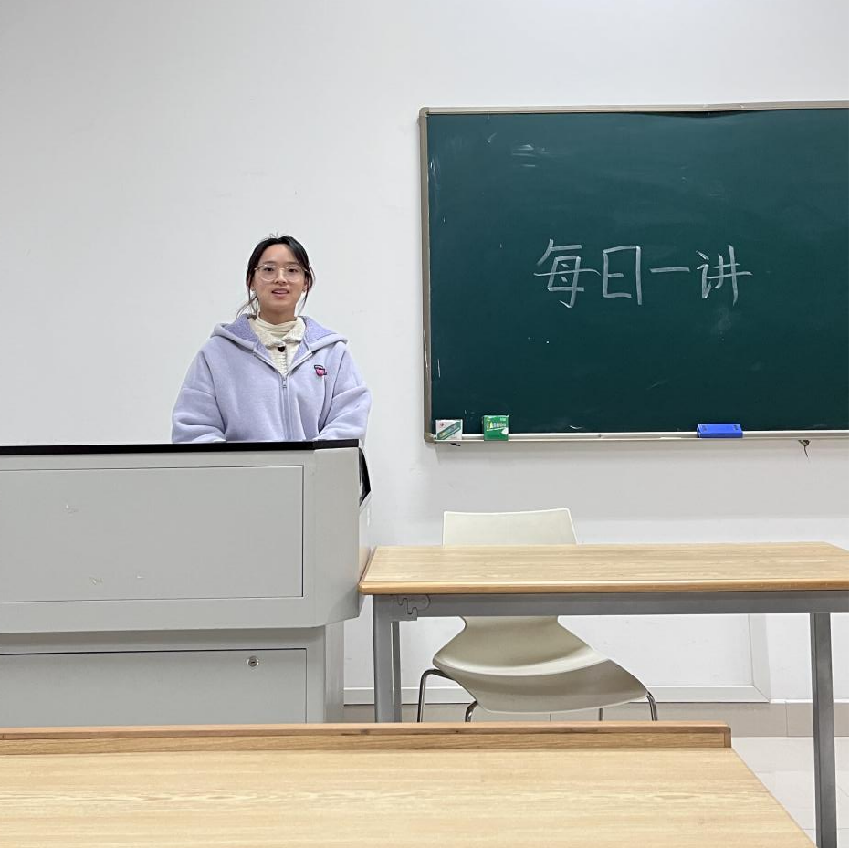 2025年4月1日上午,谢雨丹同学在慎园1号楼教室进行了以《省域治理现代化,推广浙江经验》为主题的演讲。