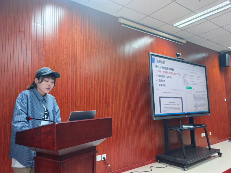 2022级生态学硕士研究生费芳敏,现已拟录取为大连理工大学博士研究生。她首先与大家分享了申博工作的三个基本阶段,分别是邮件联系导师、网络报名和线下复试。其中,费芳敏指出邮件拟写需要注意格式、称呼以及撰写的内容,希望大家提前学习和准备,注意邮件撰写的严谨性。此外,她强调了文章的重要性,指出“文章能够最直接的证明科研能力”。最后以“前路漫漫亦灿灿,纵有疾风起,人生不言弃!”与大家共勉,希望大家努力向着自己目标的学校迈进。