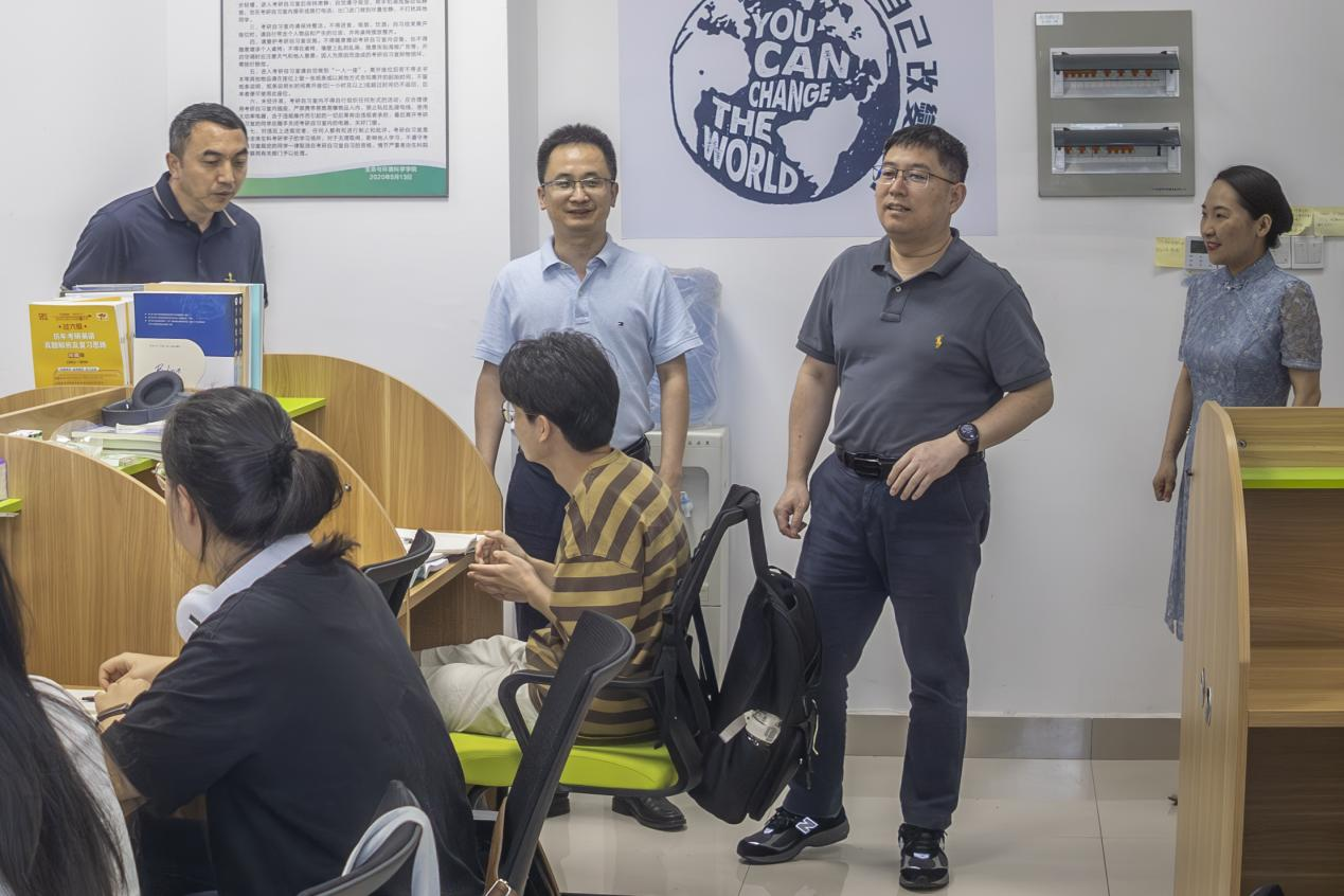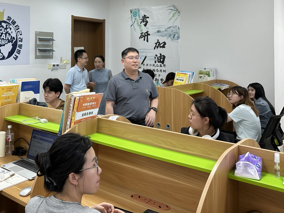7月1日下午,做爱自拍 党政领导班子走访慎园14号楼考研教室,看望并慰问了备战考研的2026届生科学子,为同学们加油鼓励并发放了“考研加油包”。
