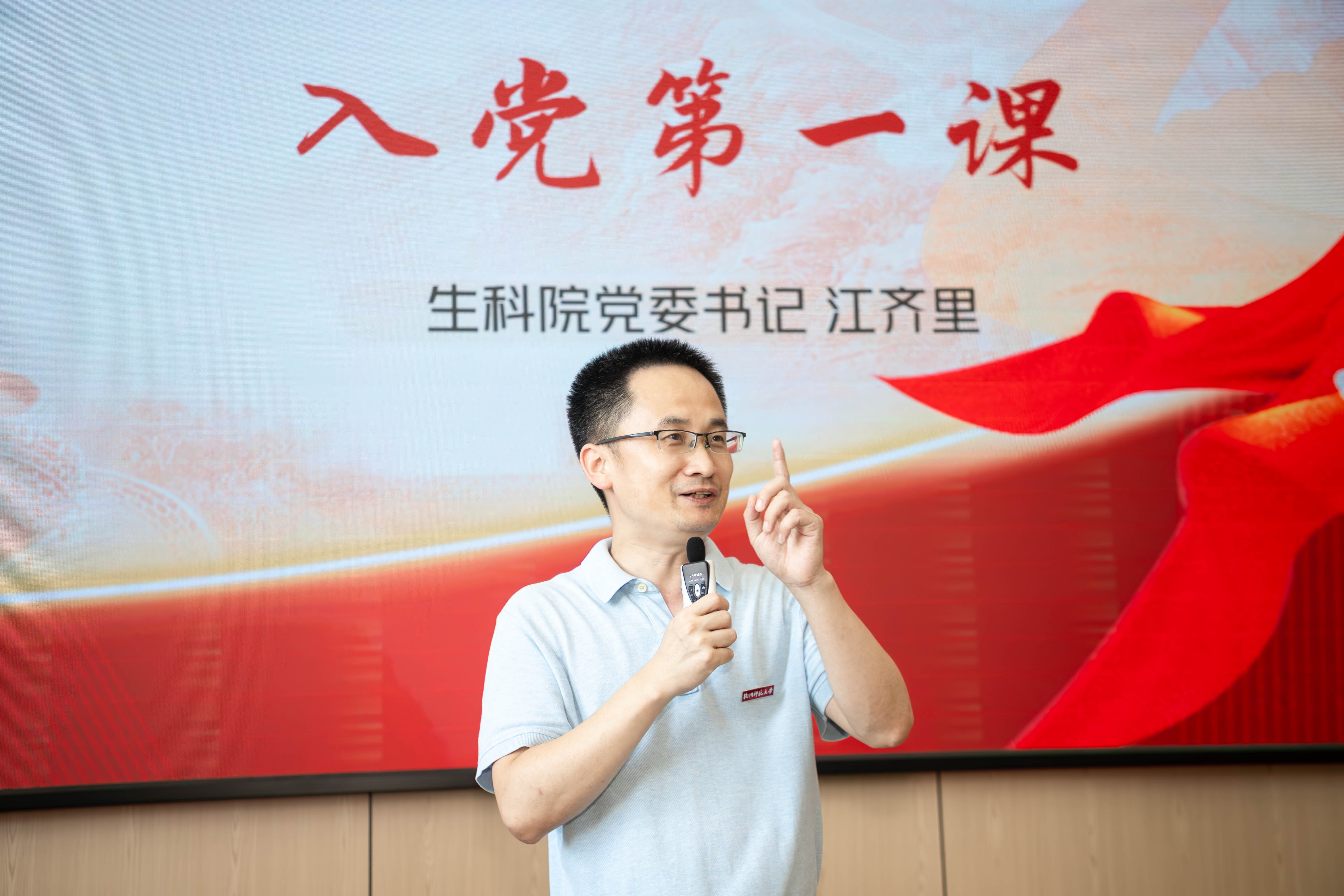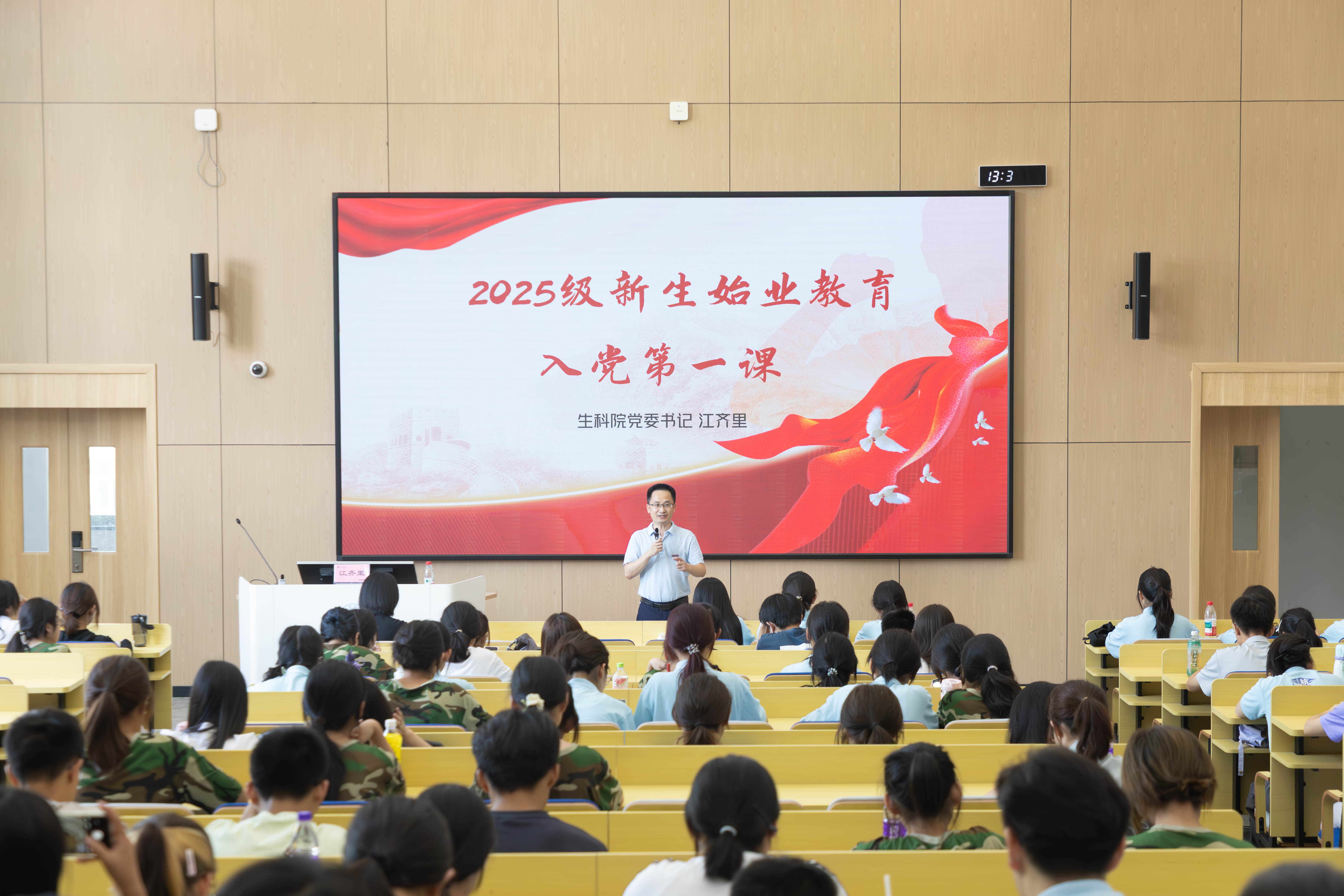 9月16日下午,做爱自拍 在下沙开展2025级新生始业教育之入党第一课。本次活动由做爱自拍 党委书记江齐里主讲,组织员梁良参加。