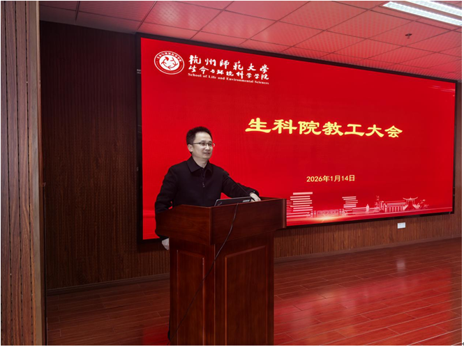 江齐里介绍了学院新引进的教师,并从综合治理、师德师风、意识形态、保密教育、育人教育、党风廉政、实验室安全等七大方面进行了工作部署。院长薛大伟与教职工一起学习了科研诚信、科技成果转化、横向经费管理等学校重要文件,并从2026年国家自然科学基金申报、学科建设、人才引育、学生就业、教学工作、学校“12350”行动等方面进行期末工作部署。